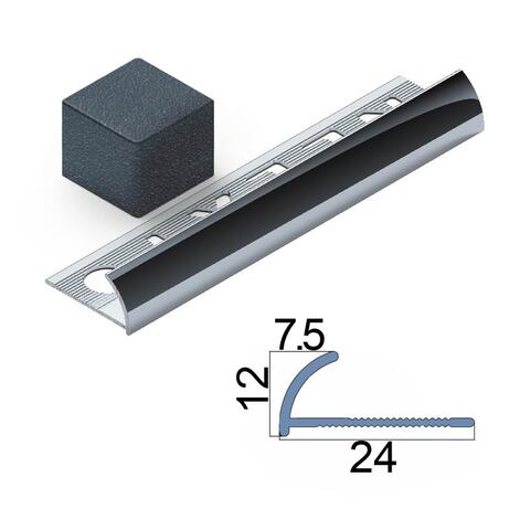 PV17-46 Профиль для плитки внешний алюминий черный блестящий браш 10мм х 2.7м