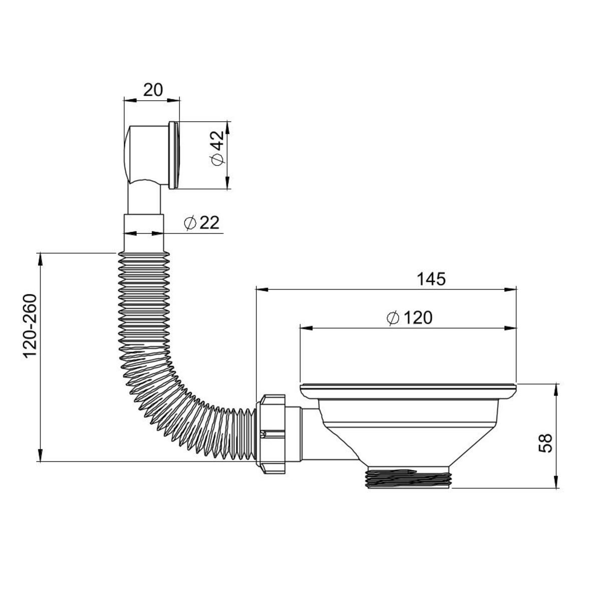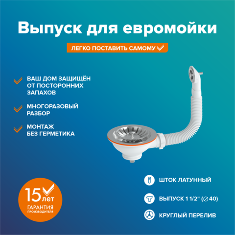 Выпуск для мойки 1 ½ (40) с круглым переливом, чашка из нержавеющей стали диаметром 115 мм