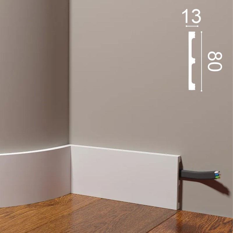 ип товараПлинтус напольныйШирина, мм80Толщина, мм13Длина, мм2000МатериалПолимер, композитМожно гнутьДаЦветПод покраскуБазовая единицаштБрендДекор Дизайн