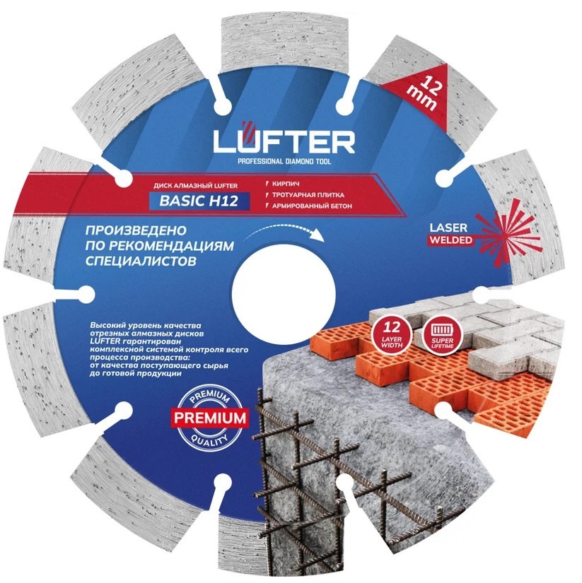 Диск алмазный LUFTER BASIC H12 125ммX2.2ммХ12мм сегмент по тротуарной плитке,армир.бетону