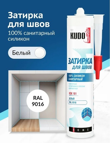 Герметик-затирка для швов KUDO HOME силиконовый санитарный, белый RAL 9016 KSK-161 - высококачественный герметик-затирка с системой отверждения ацетокси применяется для заполнения швов, подверженных деформации (теплый пол, экстерьер, террасы, угловые примыкания). Идеально подходит для помещений с повышенной влажностью: ванных комнат, душевых кабин, кухонь, для остекления и т.д.