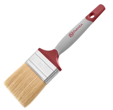 Кисть малярная Avanza плоская 70х14 мм предназначена для работы с лакокрасочными материалами на водной основе и изготовлена из высококачественной искуственной щетины. Обойма выполнена из нержавеющей стали. Эргономичная двухкомнентная рукоятка произведена с использованием масло-бензостойких материалов