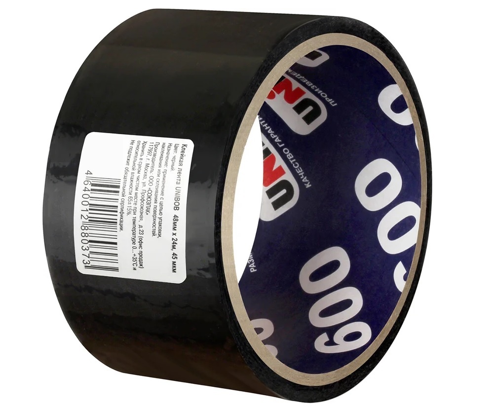 Технические характеристики клейкой ленты Unibob 600 черная 48 мм х 24 м, 45 мкм