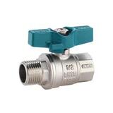 Кран шаровой. Вид: прямой кран. Назначение: вода. Тип ручки: бабочка. Тип арматуры: запорная. Материал: корпус- латунь, шарик-латунь. Тип резьбы: 1/2F-1/2М (1/2 гайка-штуцер). Тип присоединения: резьбовой