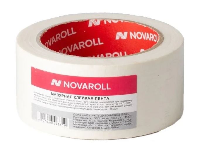 Технические характеристики малярной ленты NOVAROLL 48 мм х 40 м, белая, инд. уп.