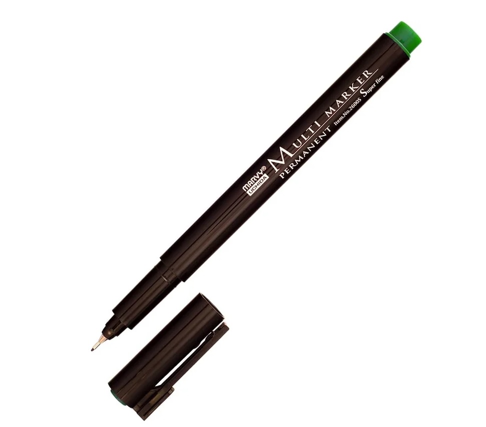 Перманентный маркер MARVY UCHIDA Multi Marker для письма по всем поверхностям 0,3-0,5мм зеленый MAR2600S/4 имеет тонкое жало.
