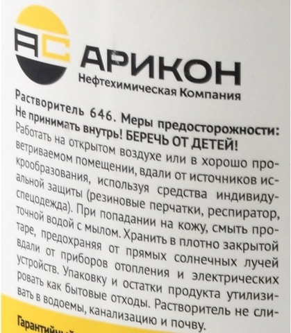 Растворитель 646 1л (0,74кг) пл. АРИКОН (ТУ)