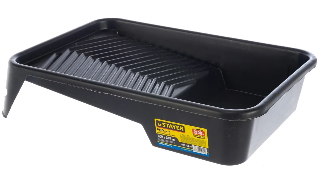 Малярная пластмассовая ванночка для валиков до 270 мм (50х34см; 2.1л) STAYER PROFI 06051-50-34 обладает самым большим в своей серии объемом (2.1 л), что уменьшает потребность добавления расходуемого материала во время проведения ремонтных работ на больших поверхностях. Конструкция приспособления рассчитана под фасадные валики шириной до 27 см. Специальная рельефная поверхность позволяет малярному инструменту захватывать больше краски за раз. Слив ЛКМ осуществляется через носик.